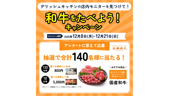 抽選で合計140名様に「選べる美味しいお米」や「選べるおいしい肉」が当たります!