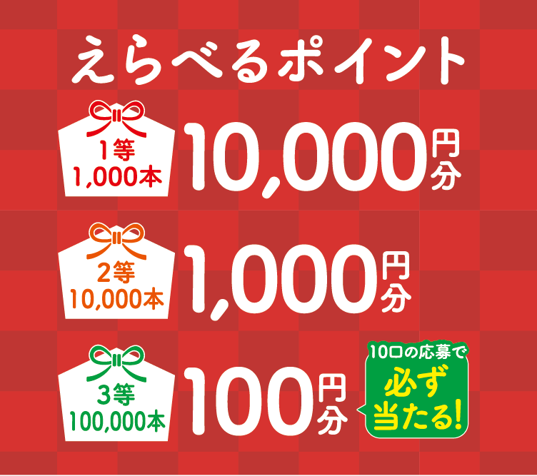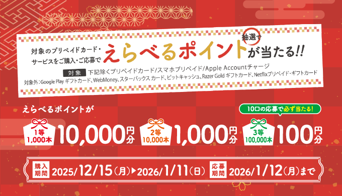 当選された方には、2026年3月中旬頃に最初に選択されたえらべるポイントが記載された