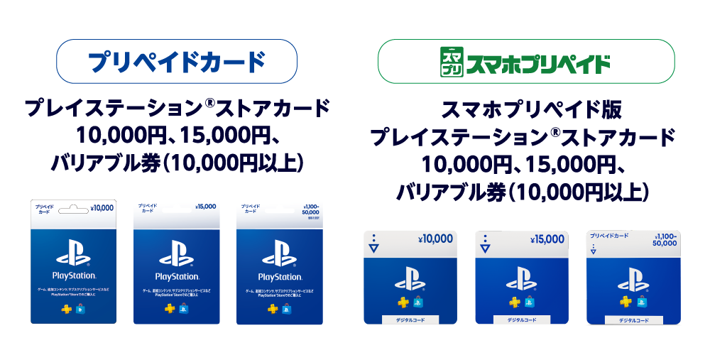 プレイステーション®ストアカード または プレイステーション®ストアチケットの10,000円券、15,000円券、バリアブル券(10,000円以上)