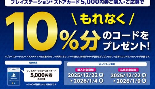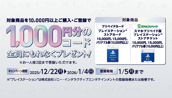 [プレイステーション®ストアカード] セブン‐イレブン限定!プレイステーション®ストアカード/チケット購入で、1,000円分のコードがもれなくもらえるキャンペーン!|2026年1月4日(日)まで
