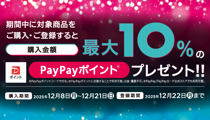 - 後日、購入金額の10%のPayPayポイントをプレゼント!・・・詳細は『PayPayポイントの付与方法について』をご確認ください。